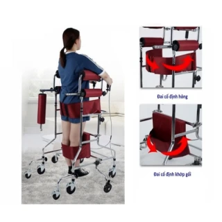 Sản phẩm đi kèm với hệ thống đai giữ vùng đầu gối, vùng hông giúp người bệnh đứng thẳng và tập đi một cách tự tin và an toàn. Đồng thời, đai hỗ trợ tập đi được thiết kế riêng cho từng giai đoạn phục hồi, giúp người dùng linh hoạt lựa chọn phương pháp phù hợp với tình trạng sức khỏe của mình.